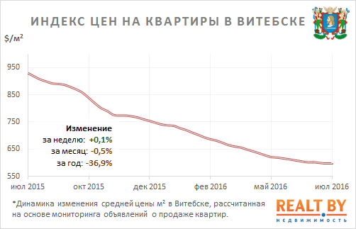 За неделю с 11 по 18 июля 2016 года информационно-аналитическим центром Realt.by были отмечены следующие изменения на вторичном рынке жилья города Витебска: