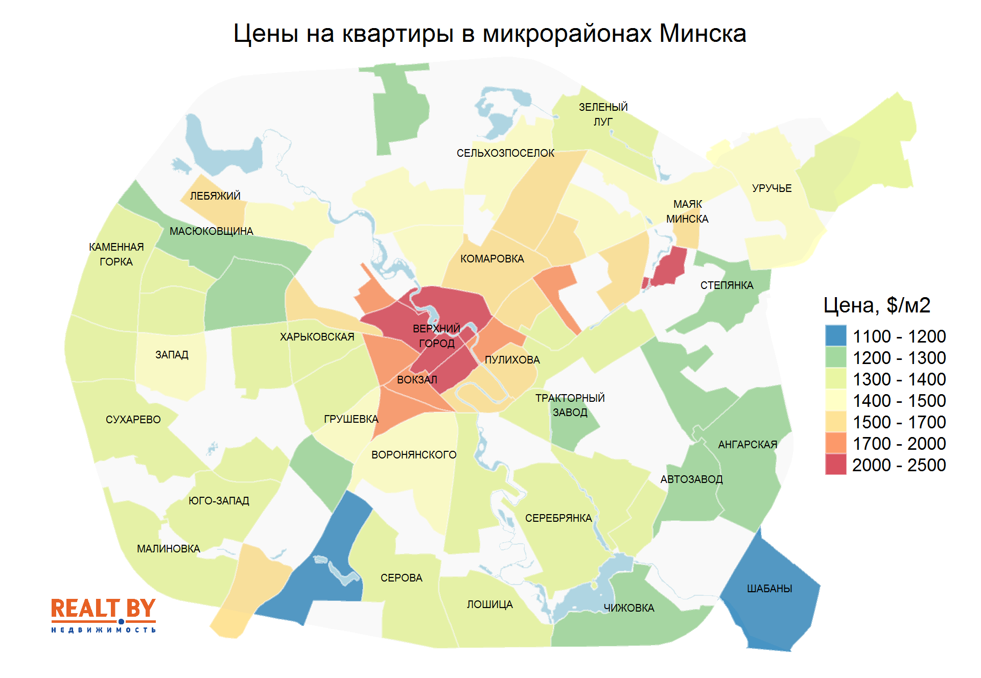 Изменение цен в районах Минска на 24 февраля выглядит следующим образом: