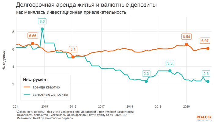 Доходность аренды за месяц не изменилась. На данный момент аренда позволяет заработать в 2.6 раза больше, чем лучшие депозиты в валюте.