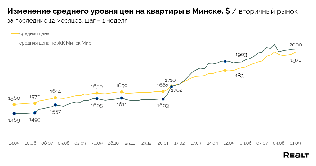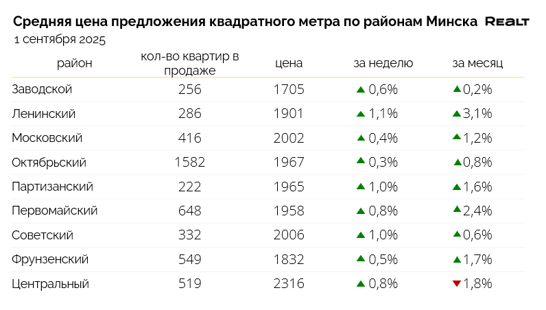 На объем предложения и индекс цен в Минске сильно влияет большое количество объявлений в базе Realt о продаже квартир в строящихся новостройках преимущественно Октябрьского, а также Центрального и Московского районов. Чтобы минимизировать их воздействие на показатели, описывающие вторичный рынок продажи квартир, все представленные ниже данные рассчитаны без учета квартир в строящихся домах.
