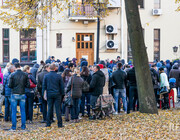 Под дверями УКСа Мингорисполкома выстроилась очередь за квартирами. Чтобы не потерять ее и получить желанные квадратные метры, людям пришлось 6 суток дежурить днем и ночью.