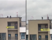 Опасные кадры с высотки на улице Аэродромной в Минск-Мире опубликовал Кокобай. На видео видно, как два мальчика сидят на крыше высотки.