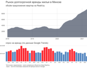 Спрос на аренду квартир в столице восстанавливается: в сравнении с мартом в апреле активность по поиску съёмного жилья в Минске выросла вполовину. И несмотря на то, что в целом интерес к арендным квартирам заметно ниже обычного для апреля, все же количество поисковых запросов явно превышает уровень кризисного апреля 2020 года.