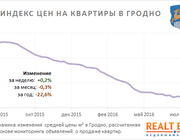 За неделю с 18 по 25 июля 2016 года информационно-аналитическим центром Realt.by были отмечены следующие изменения на вторичном рынке жилья города Гродно: