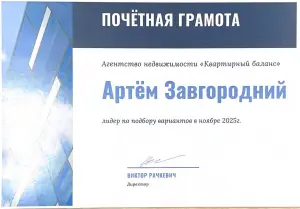 Я Завгородний Артём, агент по операциям с недвижимостью, специализирующийся на Минске и Минском районе. Моя цель — помочь клиентам находить идеальное жилье и делать сделки максимально комфортными и выгодными.