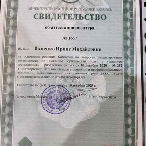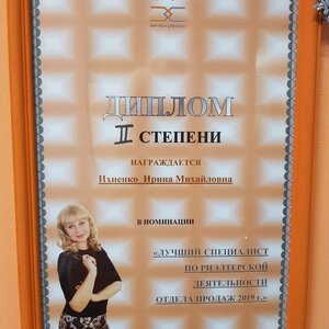 Выражаю свою благодарность за отличную работу в продаже недвижимости .Риэлтер Ирина Ихненко -внимательная,культурная,общительная.Рекомендую все такого замечательного Риэлтера!!!