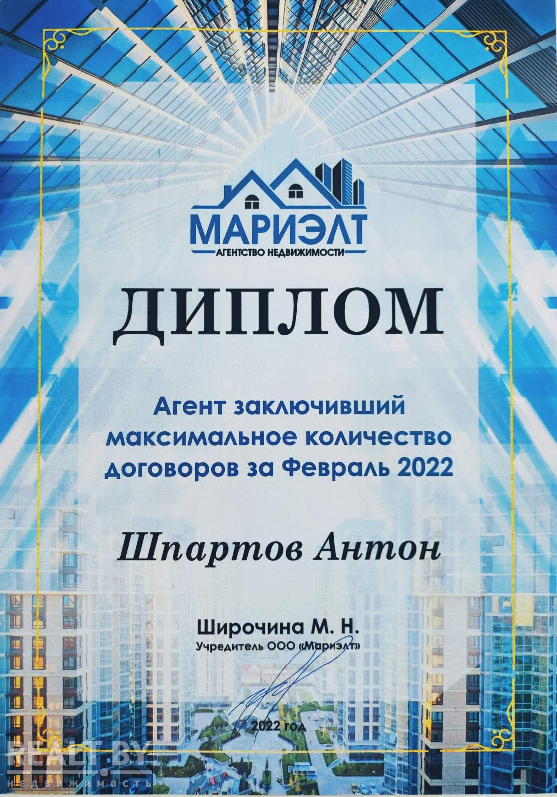 Хочу выразить благодарность Антону за быструю продажу моего дома. Отличный специалист, коммуникабельный, пунктуальный и отлично фотографирует! Спасибо!