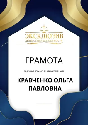 Добрый день, меня зовут Ольга Кравченко, аттестованный риэлтер ООО «Центр недвижимости Эксклюзив» и я готова помочь Вам в решении любого вопроса, связанного с продажей/ покупкой жилой и коммерческой недвижимости.