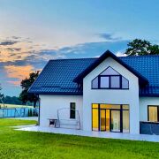 отдельно стоящий дом с отдельной зыкрытой территорией. Комфортно рассчитан для двоих или на одну семью. Основное отопление тёплый пол, который греется от электричества. Есть настоящий камин одновременно греющий сауну, им можно пользоваться без ограничения. В доме все кухонные принадлежности, посуда, духовка, СВЧ, холодильник, смарт ТВ, WiFi, Постельное белье, полотенца, тапочки. На улице открытая терраса с прекрасным видом на лес, поле и закат🌄 барбекю и принадлежности имеются.