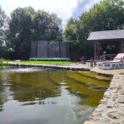 Дополнительно можно взять Джакузи с гидромассажем у эко-пруда +38С и баню.