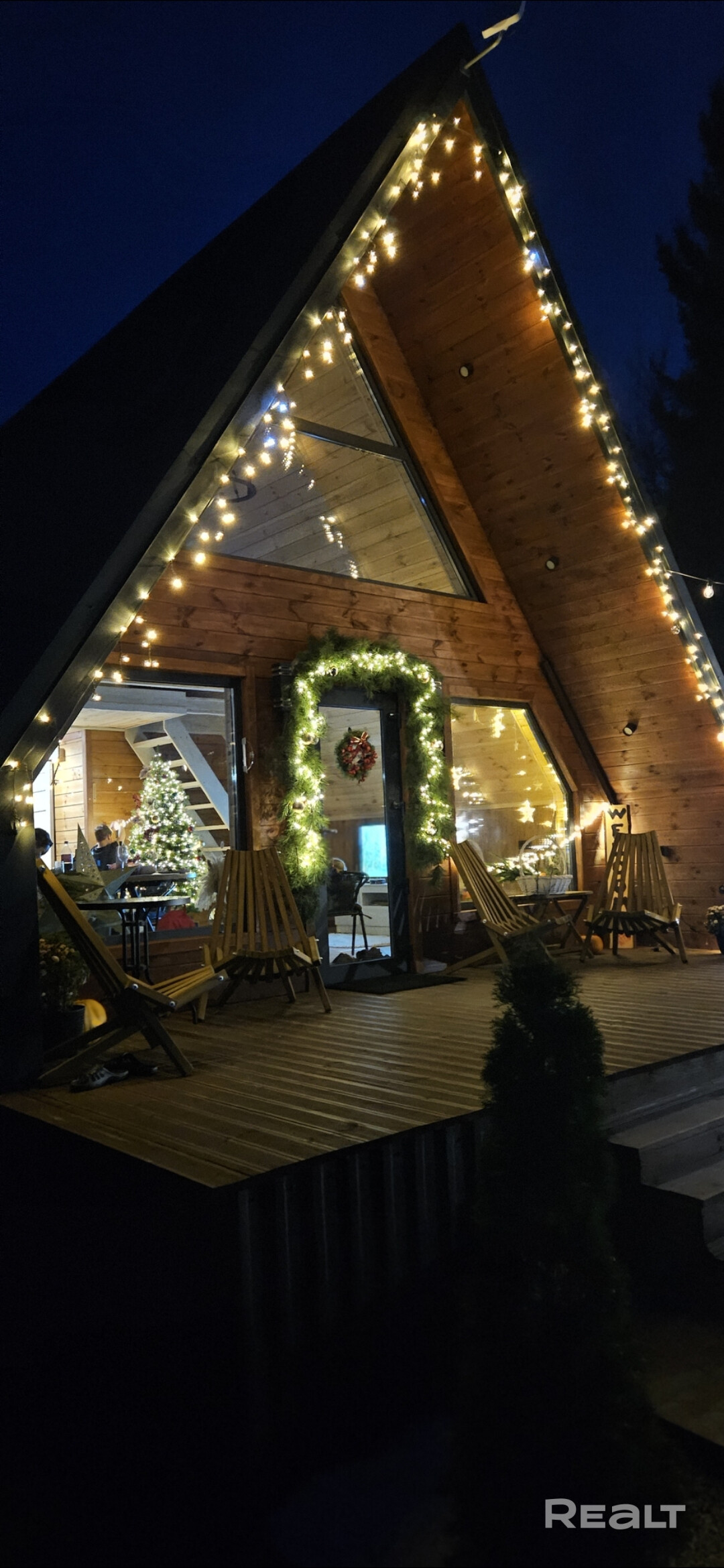 Предлагаем отдохнуть в нашем новом, современном доме-шалаше, с деревянной террасой, рассчитанный на 6 человек. На территории у нас есть: баня с понорамными окнами, горячая купель, беседка с мангальной зоной. В доме есть все необходимое для комфортного отдыха: гостиная со вторым светом, дровяной камин, две комнаты с кроватями, диван, средства личной гигиены, фен, комплект полотенец, посуда для сервировки, чайник, микроволновая печь, чай, кофе, соль, сахар. Заселение: заезд 15:00, выезд 12:00.