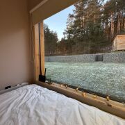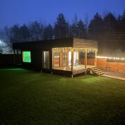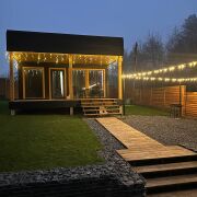 Большие окна создадут ощущение интеграции с красивым сосновым лесом, который начинается прямо на нашем участке размером в 18 соток. А изолированная спальня с двуспальной кроватью 200х160 даст возможность уютного отдыха и личного пространства. Гостям бесплатно предоставляется белоснежное чистое постельное белье.