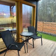 В доме две террасы. Маленькая, выход к которой осуществляется через сауну, и большая (18 м2), где есть стол и стулья для отдыха, общения, и совместного времяпровождения в любую погоду, так как терраса крытая.