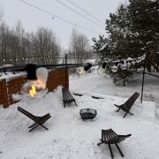 Большая костровая зона с романтичной подсветкой по периметру, со стульями и мангалом находится у дома. Можно приготовить барбекю и отдохнуть у костра. Гостям бесплатно предоставляется комплект для мангала и костра: угли, розжиг, раздувайка, перчатки, шампуры, решетка, дрова…