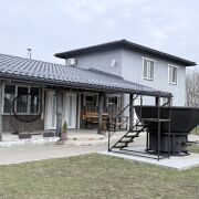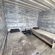 2ой дом поменьше (1 отдельная комната и кухня-гостиная),на 6 спальных мест.