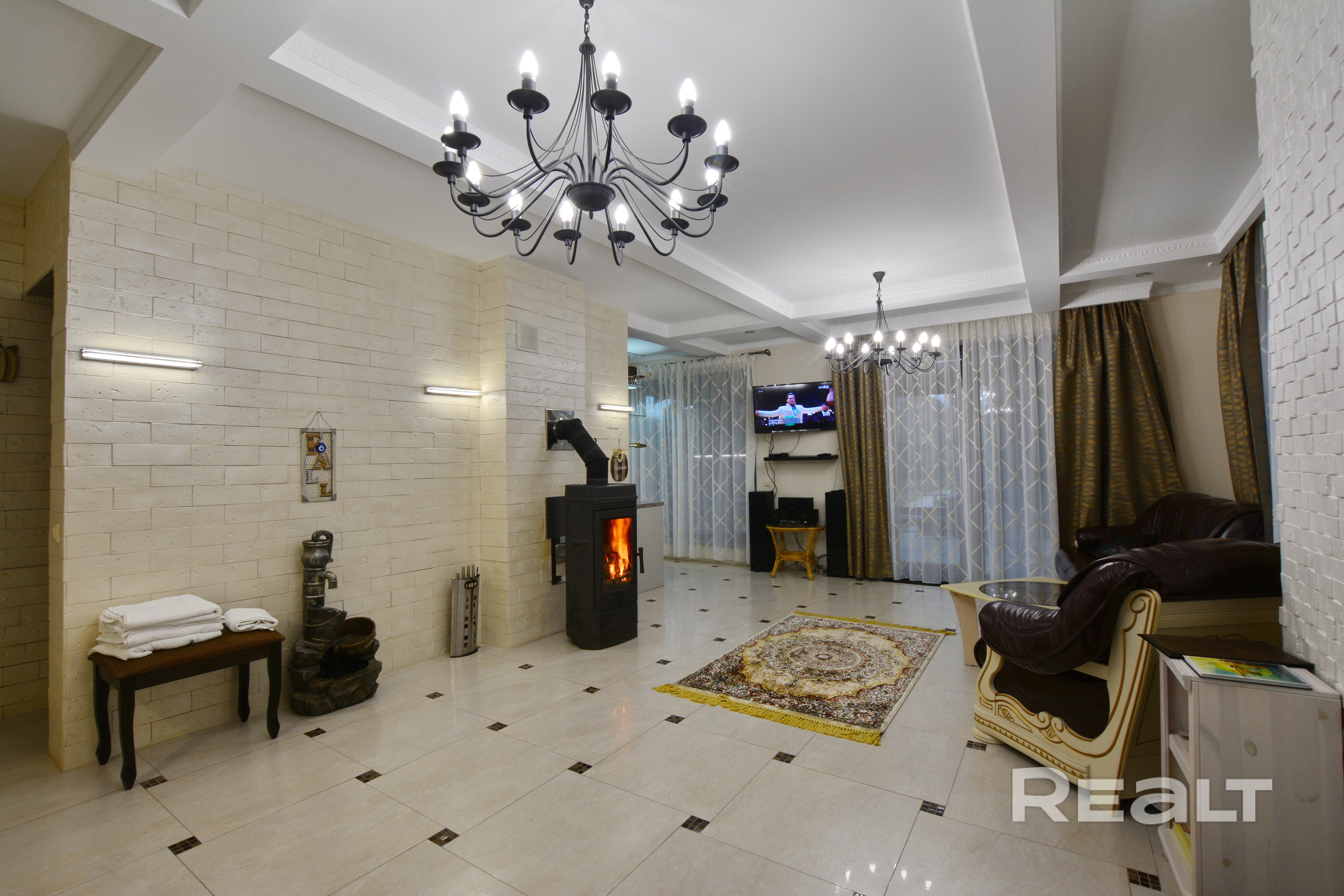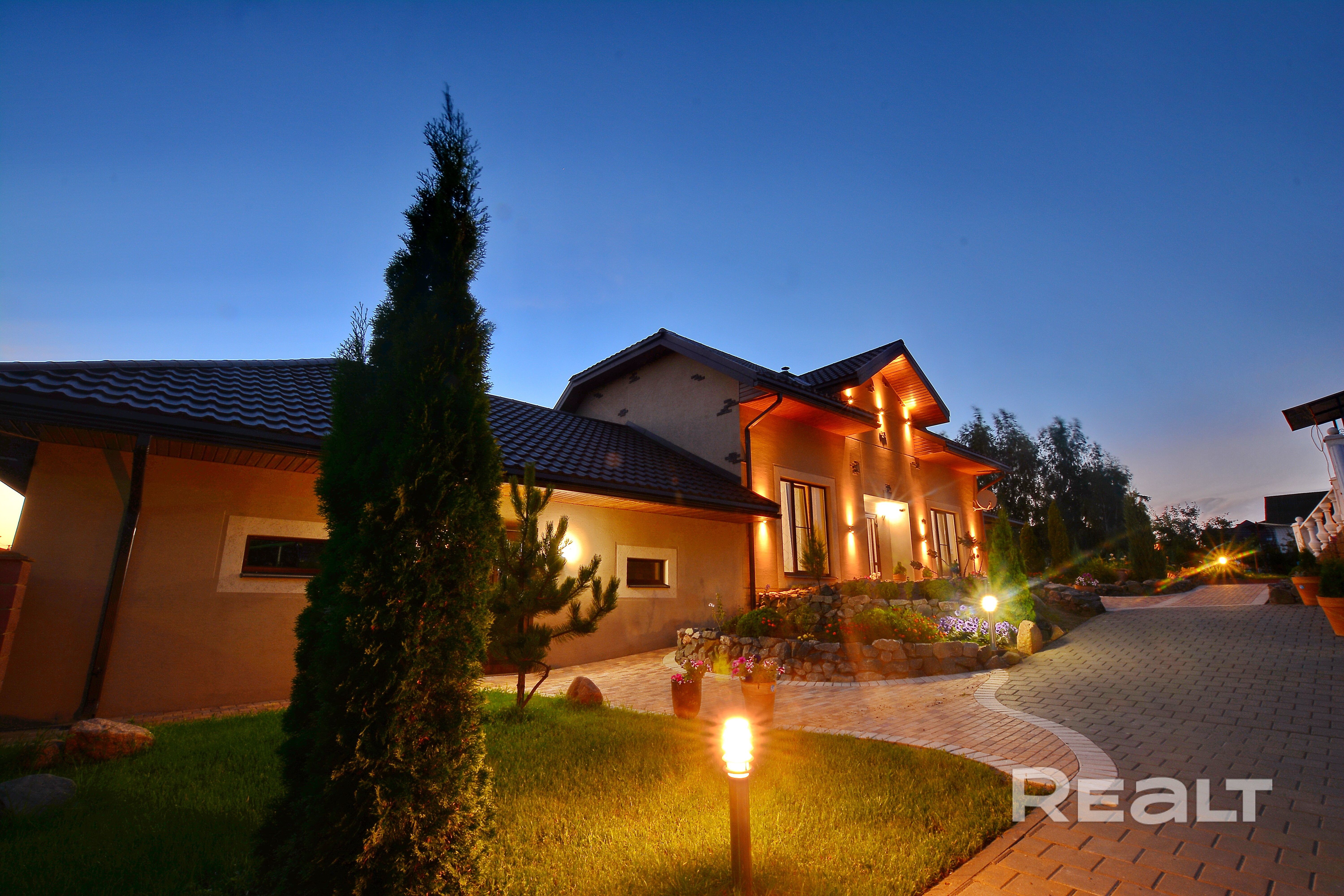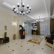 Если вы хотите комфортно отдохнуть недалеко от Минска , то вам обязательно нужно приехать в агроусадьбу с сауной "Belladzhio VIP Minsk". Мы располагаемся в 500 метрах от МКАД в а.г. Ждановичи. Стильный интерьер, французские окна до пола с видом на ухоженную территорию с прудом, водопадом и красивыми растениями. Современная финско-русская парная оборудована 2-мя печками: на дровах и электрической, чтобы постоянно и легко поддерживать нужную вам температуру. В нашем тёплом бассейне, который благодаря разным уровням воды подходит детям и взрослым, вы сможете получить настоящее удовольствие от многочисленных аттракционов: водопадов, гидропушки и гидромассажа. Во всех помещениях у нас теплые полы. В "Belladzhio VIP Minsk" 2 комнаты отдыха: спальня и гостиная. Гостиная - это большая, стильная и уютная комната, где есть всё необходимое для настоящего отдыха: камин, мягкая мебель, AV аппаратура, большой телевизор с плоским экраном, где вы легко выберите себе передачу по вкусу из 220 русскоговорящих спутниковых каналов. Тут же кухня с посудой, плитой, холодильником, посудомоечной машиной, чайником, тостером. Из гостиной вы можете выйти на огромную крытую террасу, оборудованную садовой мебелью и мангалом. В тёплое время года тут можно организовать праздничный стол.