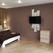 Все номера оснащены: Мебелью, Кроватями, ТВ, Санузлами, Холодильниками, Постельным бельем, Полотенцами, Столовыми приборами, Посудой, Микроволновками, Чайниками, Wi-Fi.