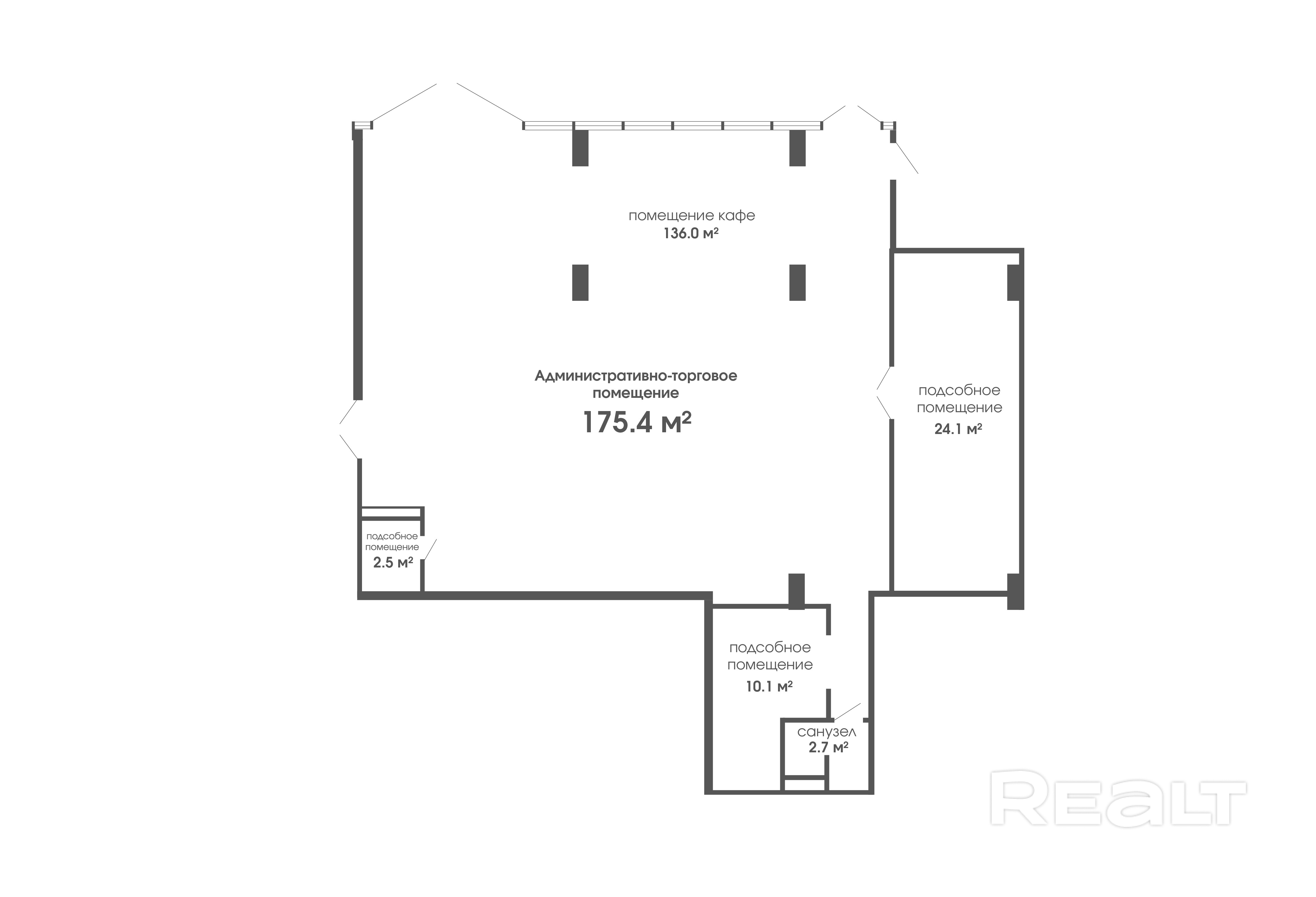Сдается в аренду коммерческое помещение площадью 175.4 м², расположенное на первом этаже бизнес-центра "Аякс" по адресу: ул. Могилевская, 1.