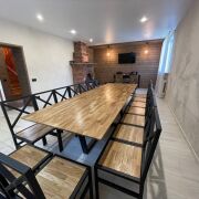 Обустроенная площадка для игры в волейбол и бадминтон, аэрохоккей, настольный теннис, Xbox, Kinect для подвижных игр, олдскульная приставка Dendy, караоке с радиомикрофонами, музыка, светомузыка, дартс.
