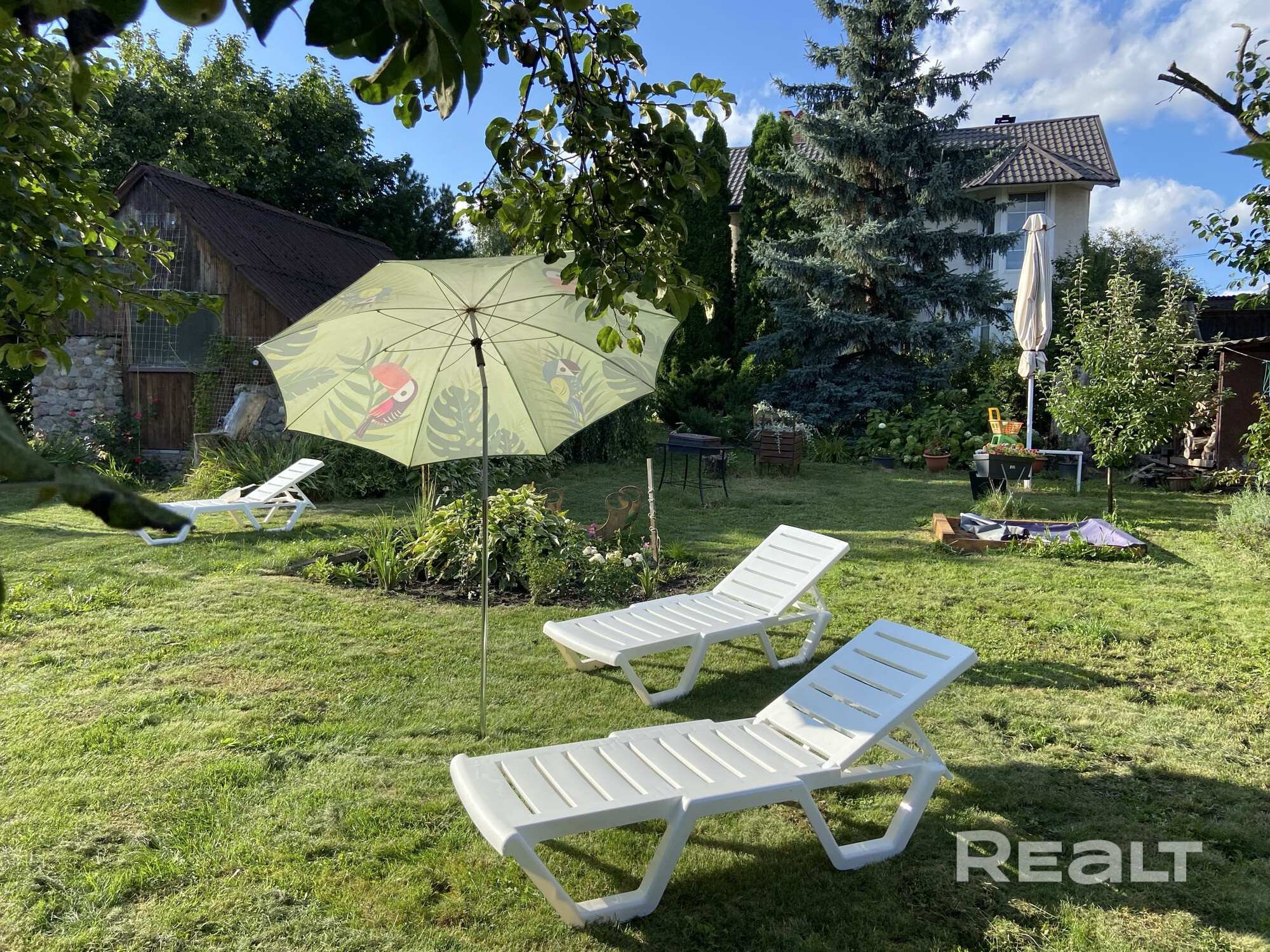 Дом идеально подходит для отдыха и размещения гостей до 10 чел. Спальных мест 5. Стоимость 350 р указана при заселении до 4 чел. Стоимость для гостя без спального моста 30 р. Особенности коттеджа: •На территории коттеджа вы найдете удобную банкетную беседку, место для барбекю, уличные зонты, батут и детскую площадку, баню.Расположение: Коттедж расположен всего в 100 метрах от нового элитного района Минск-Мира, что делает его удобным местом для проживания.