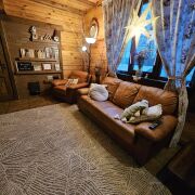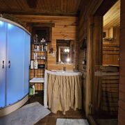 4 отдельные комнаты (в каждой предусмотрено размещение 2х людей) и 2 общих комнаты, где также есть раскладывающиеся диваны. Сауна с душевой кабиной. 2 Санузла