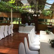 5.Большая застекленная беседка для крупных мероприятий, вмещающая до 100 человек. Имеется опыт проведения свадеб и крупных торжеств.