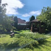 Отдых до 12 чел. Баня. Спальных мест: 9+1детс-ая кров-ка. На тер-рии: мангальная зона, беседка, неогороженный пруд, качели, парковка. Дом на 2 этажа: на 2-ом этаже спальные комнаты. На 1-ом: большой стол на 12чел., танцпол со сценой, телевизор. На кухне - холод-ик, СВЧ, газ. плита, элект. чайник, посуда. В доме 2 санузла. Стоимость зависит от кол-ва людей: до 4ч.-260р, 5ч.-280р, 6-300р., 7ч.-320р., 8ч.-340р., 9ч.-360р. Дети до 6 лет беспл. Баня +24р за чел. Wi-Fi. Несовершеннолетним не сдаём.