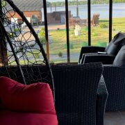 - большой балкон, обустроен под зону отдыха с видом на озеро и реку.