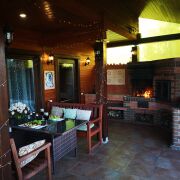 Крытая терраса – наша гордость, её обожают все!!! Диваны и кресла, обеденный стол, мини-кухня с горячей и холодной водой, комплекс барбекю с русской печью, жаровней и казаном. И вид на озеро…. Это именно тот случай, когда слова просто излишни.
