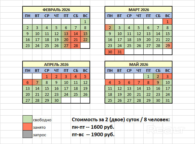 Полная стоимость за 2 сут/8чел ~ 1600р/будние, 1900р/вых. Доплата за количество человек 40руб/чел/сутки. На одни сутки цена = 2 суткам. Ранний заезд и поздний отъезд без доплат. ТГ: Точная цена по запросу. Дом укомплектован. Территория 15 соток, видеонаблюдение. В 500м от дома биологический заказник. Кухонный стол - макс. 12 чел. Сауна на дровах +150 руб. Одновременно 2-4 человека. Не для шумных компаний и алко вечеринок. Культурные мероприятия приветствуются. Заключается договор.