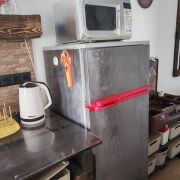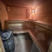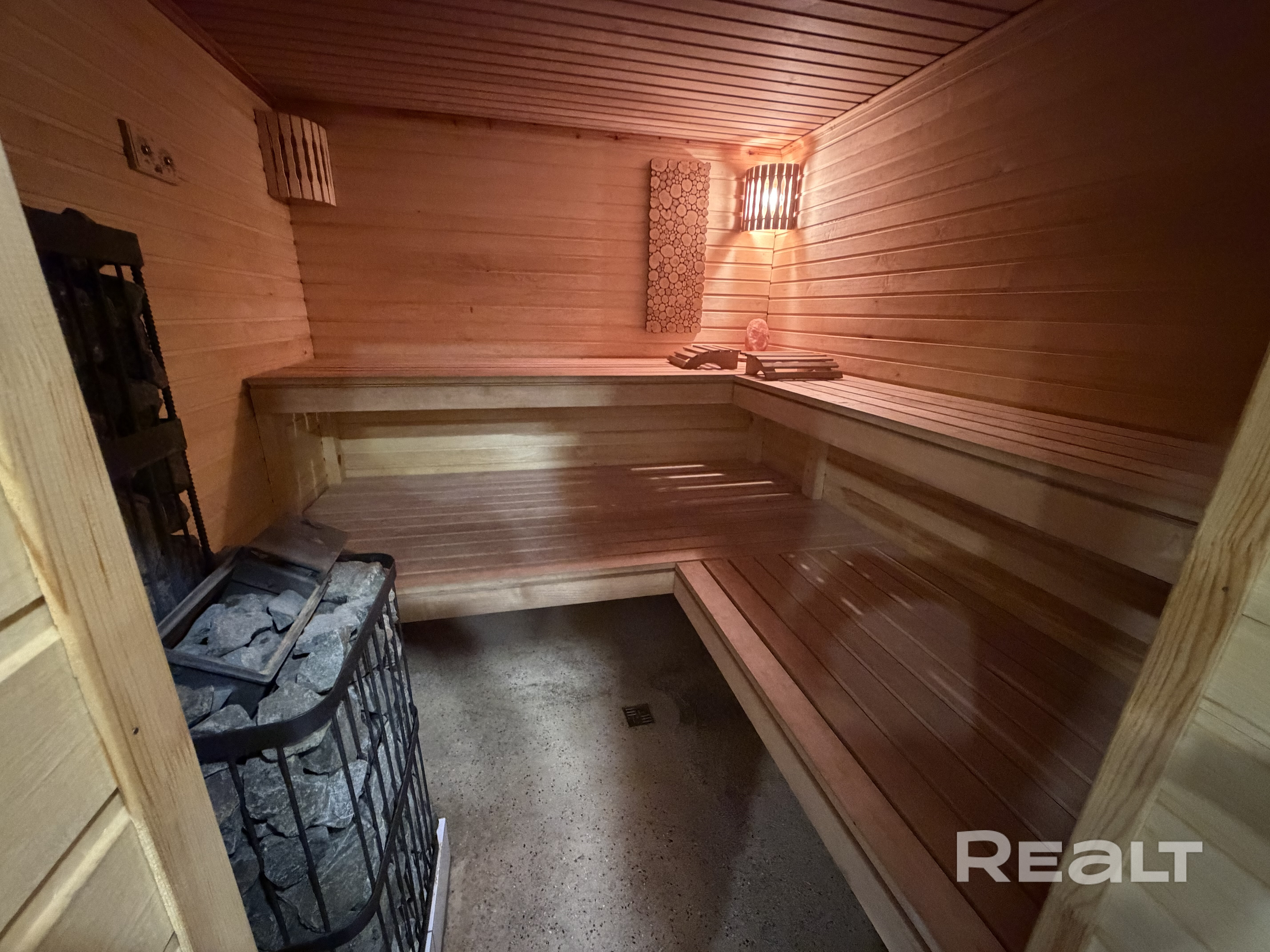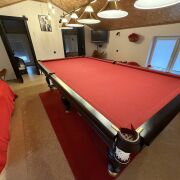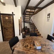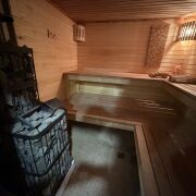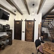 Гостевой дом (коттедж) с Баней, тёплым Бассейном-купелью и Бильярдом у Михалыча в стиле лофт площадью 110 м2. В ней находится русская баня на берёзовых дровах, бассейн-купель, русский бильярд 10 футов, гостиная, 4 комнаты отдыха и мини-кухня с холодильником, СВЧ-печью, электрочайником, электроплиткой одноконфорочной, посудой — всё, что нужно для комфортного отдыха.