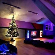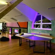 настольный футбол, теннис, проектор, профессиональная аудиосистема, Sony PlayStation, караоке, настольные игры, детский уголок и другое. Пространство идеально подходит для вечерних посиделок в холодное время года, проведения тренировок, выездных семинаров, тренингов и вечерних просмотров фильмов;