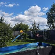 Всё удобства для семей с детьми, мячи, гамак, батут. Постельное белье, полотенца, микроволновая печь, чайник, индукционная плита.