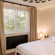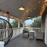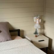 Внутри расположены 4 комнаты (одна из которых детская) + гостиная, там находятся 8 удобных спальных мест. Снаружи просторная веранда с мебелью для отдыха + качели-кокон, которые никого не оставят равнодушными) Кухня сделана в современном стиле и оборудована: индукционной плитой, микроволновой печью, вместительным холодильником и вытяжкой. На первом этаже — есть санузел и душ, а на втором — ванна.