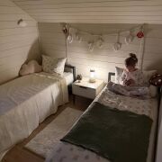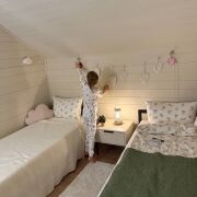 Внутри расположены 4 комнаты (одна из которых детская), там находятся 8 удобных спальных мест. Снаружи просторная веранда с мебелью для отдыха + качели-кокон, которые никого не оставят равнодушными) Кухня сделана в современном стиле и оборудована: индукционной плитой, микроволновой печью, вместительным холодильником и вытяжкой. На первом этаже — есть санузел и душ, а на втором — ванна.