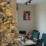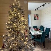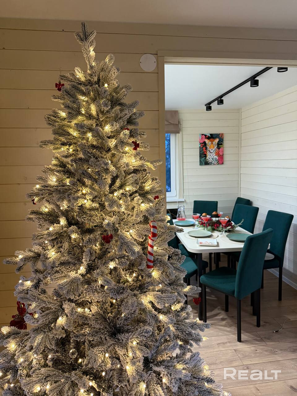 В нашем загородном доме есть всё для приятного отдыха! С элементами новогоднего декора и шикарной заснеженной ёлкой!