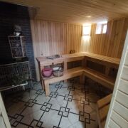 Есть все необходимое для комфортного отдыха: большая гостинная, камин, кухня, сауна с комнатой отдыха, остекленная терраса, чан-купель, беседка, барбекю зона, водоем с рыбой, моторный катер, волейбольная площадка.Очень живописное место.