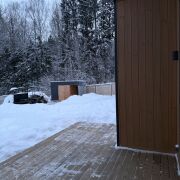 В нашем доме три спальни каждая с кроватью Queen Size. Кухня с техникой и посудой (холодильник, плита, духовой шкаф, СВЧ, кофемашина, чайник, тостер, посудомоечная машина, сковорода, кастрюли, кружки, бокалы, тарелки, столовые приборы), а также пакетированный чай, кофе в капсулах. сахар, соль, перец, масло растительное, бумажные полотенца, салфетки В санузле тропический душ, банные полотенца, полотенца для рук, полотенца для ног, одноразовые тапочки, мыло, шампуни, одноразовые зубные щетки. Отопление теплыми полами, есть кондиционер. На улице есть зона барбекю, с мангалом шампурами, углем и жидкостью для розжига, место у очага с шестью креслами и кострищем. Есть уличная мебель. Wi-Fi бесплатный. Баня с купелью (оплачивается отдельно, 300 рублей за 4 часа), в стоимость бани входят полотенца, простыни, тапочки.