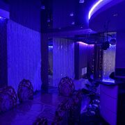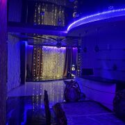 Коттедж включает в себя на первом этаже банкетный диско-зал со своей сценой, танцполом и освещением… барную стойку с умывальником и морозилкой, сан узел со своей душевой кабиной и ванной, зал для отдыха с телевизором, камином для приятной атмосферы,просторную кухню. По стеклянной лестнице вы поднимаетесь на второй этаж с четырьмя спальнями и просторным санузлом с просторной ванной .на сегодняшний день в большом доме 8 спальных мест ( в ближайшем времени будет 12) и 4 в гостевом. На территории есть шашлычная зона, гостевой домик с просторной кухней и двумя спальнями с двумя санузлами. Во дворе парковка под навесом на 2 автомобиля и несколько автомобилей по периметру.
