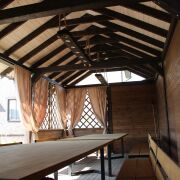 Закрытая беседка с кухней и барной стойкой вместимостью – до 12 человек.