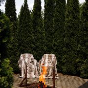 В шаговой доступности кострище и мангал в окружении величественных кипарисов. Территория очень зелёная, повсюду огромные туи, можжевельники и капарисовики.