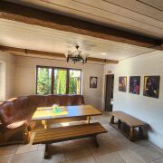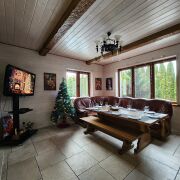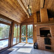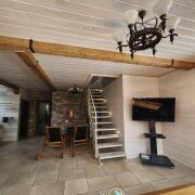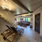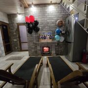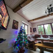 В домике есть всё для комфортного проживания. Застекленная терраса с печь-барбекю где в любую погоду можно приготовить кулинарные шедевры начиная от шашлыков до плова и шурпы. Огромная гостинная с камином, большим кожаным диваном и скамьей у дубового стола, удобные шизлонги, стоит прилечь на которые сразу попадаешь в гости к Морфею. Имеется зона кухни со всем необходимым (холодильник, варочная панель, микроволновка, посудомойка, электрочайник, кухонная утварь, шампуры, решётка, штопор...), душевая, большая ванна, отдельный санузел с псевдобидэ, ТВ, Wi-Fi 5G.