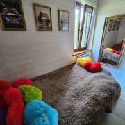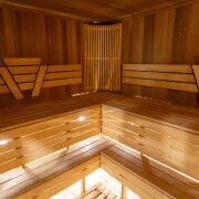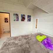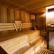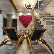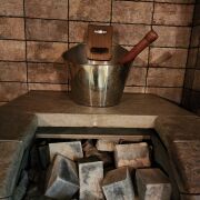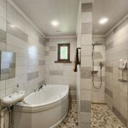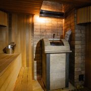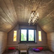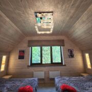 В домике три спальни открыв окна в которых вы почувствуете дыхание леса. Спальни отделаны деревом, винтажные светильники и бра из гималайской соли придают неповторимый шарм помещениям. На стильных кроватях с ортопедическими матрасами приятно и удобно отдыхать. Сердце домика - это потрясающая русская баня на дровах с сибирским кедром на стенах, ненагревающимся абашем на полках и огромной царской печью. Печь закрытого типа обшита талькохлоридом, камни - нифритовые минералы. Пар - божественный!