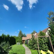Пойдешь налево от нашего домика попадешь в Глебковскую пущу с деревьями-гигантами чьи кроны смыкаются у самого синего неба, а днём там темно как ночью. Здесь можно встретить зайца, лису и даже лося. Направо пойдешь, увидишь бескрайние луга с цветущими травами которые подбираются так близко что их ароматы можно почувствовать сидя на террасе. В полутора километрах есть живописное озерцо с уточками где так приятно порыбачить. Неподалеку от домика, в лесу, находится обустроенная горка где в зимнюю пору можно с ветерком покататься на тюбингах.