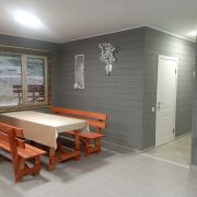 Сдается дом для отдыха в прекрасной тихой локации, в окружении леса, всего в 100 м от озера Полоневичи. Идеальное решение для влюбленных пар, семейного отдыха или компании друзей (до 10 человек). Спальные места: 4 отдельные комнаты с двуспальными кроватями + двуспальный диван-кровать в гостиной. Общие зоны: Большая гостиная с телевизором и зоной для отдыха. Просторная терраса с видом на лес — идеально для барбекю и отдыха на свежем воздухе. Мангал. Комфортная кухня, полностью оборудованная для готовки (холодильник, варочная поверхность, микро волновая печь, вся необходимая посуда и столовые приборы). Домик из натурального бруса на окраине леса, в очень тихой и спокойной деревушке. Со всеми удобствами и техникой. Чистое свежее постельное бельё и полотенца. Удобства: Санузел с душевой кабиной. Бесплатный Wi-Fi. Преимущества локации: уединенность, сосновый лес прямо у дома, близость к озеру для купания и рыбалки.