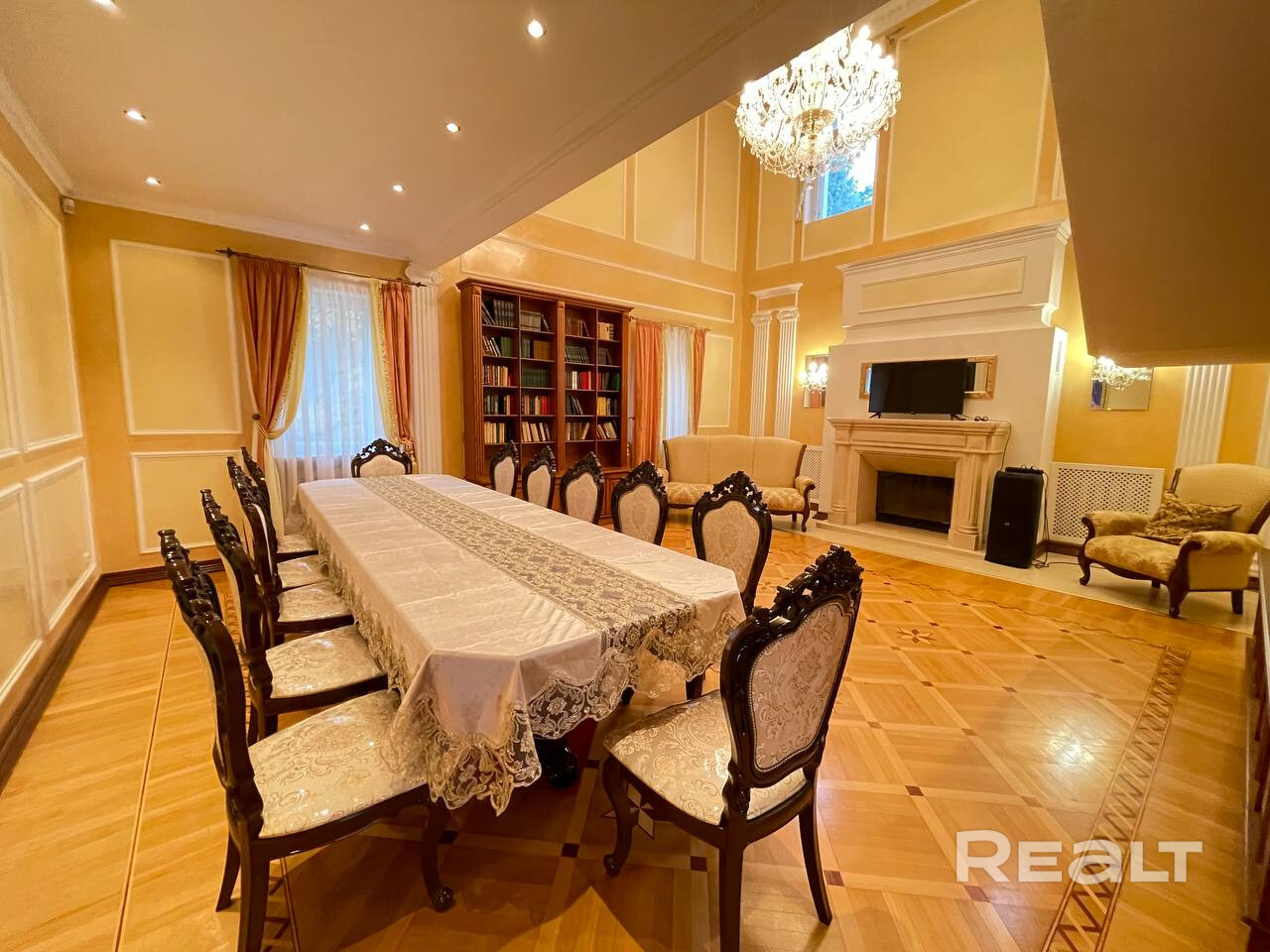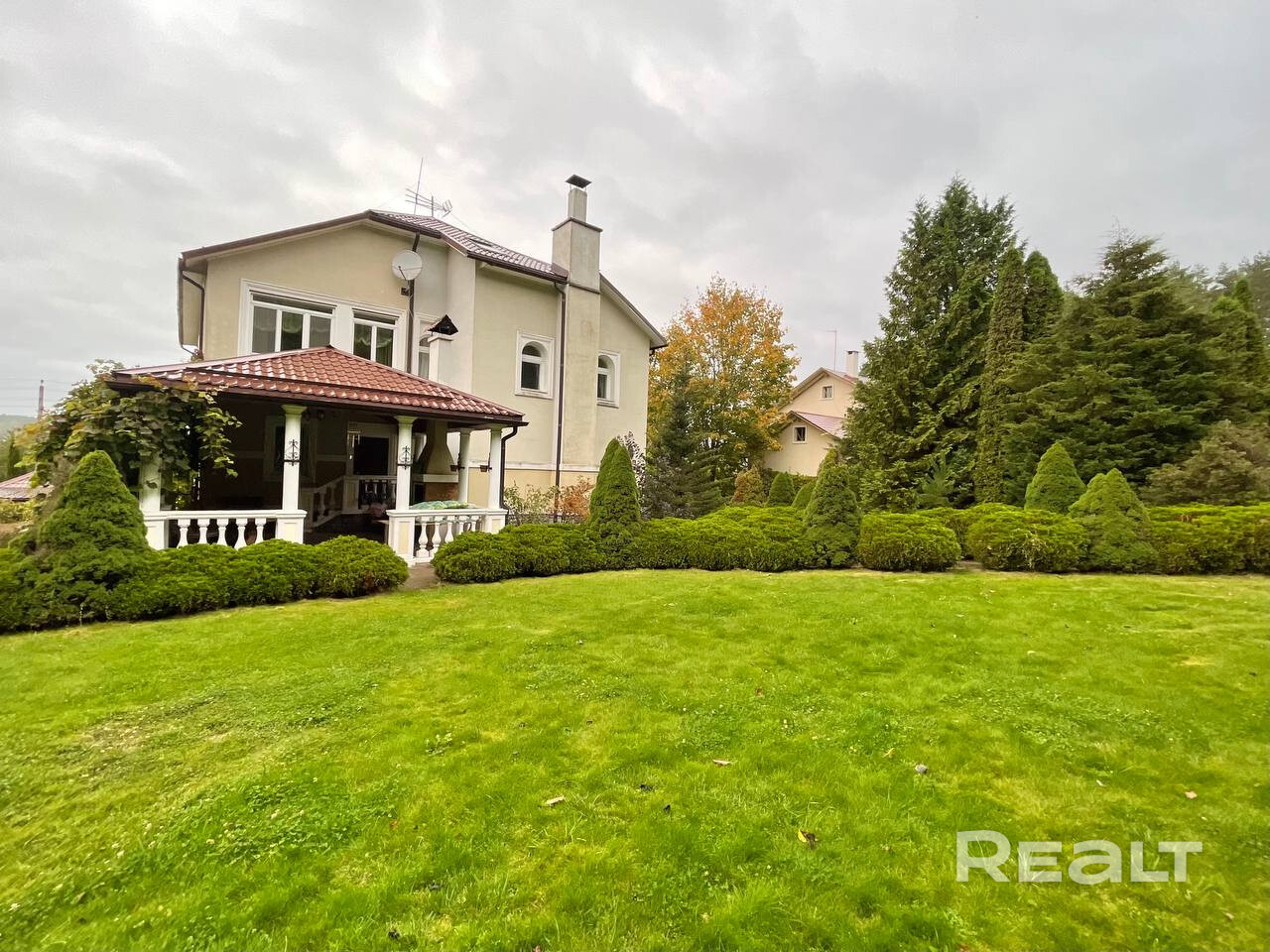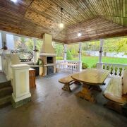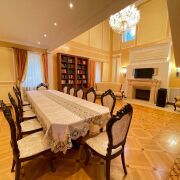 Дом-усадьба, отделка дома выполнена в классическом стиле: мозаичный паркет из нескольких пород дерева, декоративная штукатурка, лестницы выполнены из ясеня с элементами ковки, хрустальные люстры, итальянская плитка, тёплые полы. На цокольном этаже располагается просторная бильярдная со столом для снукера, спортзал со шведской стенкой и борцовским ковром, санузел, баня на дровах + бассейн с подогревом и противотоком + душевая + комната отдыха. Парковка на 8-10 машин На улице детские качели на 4 ребёнка. Беседка в индонезийском стиле. Подключена оптоволоконная сеть к Белтелеком. Разведена система видеонаблюдения. Объект имеет уникальное расположение в экологически чистом районе (природный заказник), изолирован от соседей и имеет прямой выход в лес. Всего в 20 минутах международный аэропорт Минск-2, 10 минут на автомобиле до МКАД, 5 минут до Дубровенского водохранилища.