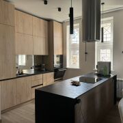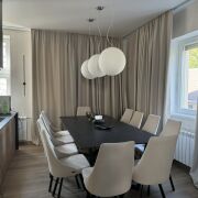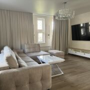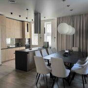 В просторной кухне гостиной бытовая техника ведущих европейских производителей, кофемашина, которая сварить вам кофе по вашему вкусу.