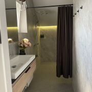 В доме на каждом этаже имеется санузел с душем а также в основном санузле есть просторная ванна.