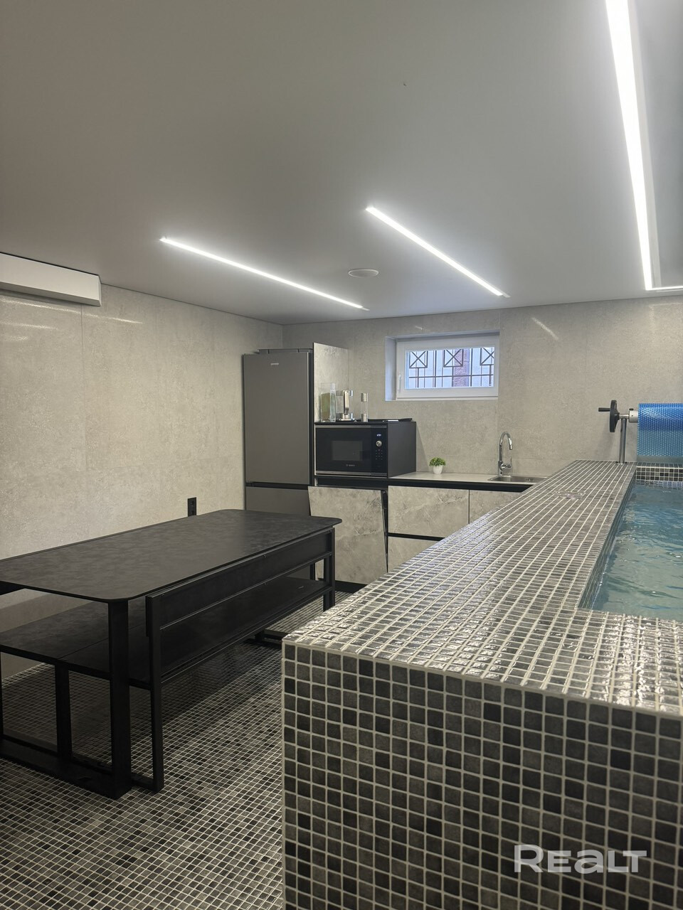 Сразу с заезда в дом вы попадаете в СПА, с парилкой на дровах, оборудованной печью ведущего Финского производителя Харвия с топкой прямо внутри парилки тем самым вы принимая банные процедуры любуетесь живым огнём, Камни Жедеит и малиновый Кварцит, парилка оборудована вытяжкой вентиляцией что позволяет комфортно дышать и любителям высоких температур, стерео-системой что позволяет вам расслабится и насладится парением в сопровождении любимой музыки. После выхода из парилки установлено современное устройство-водопад с ледяной водой и 2 душа. Бассейн оборудован противотоком, гейзером, подсветкой, циркуляцией, подогревом, обеззараживанием и фильтрацией воды.