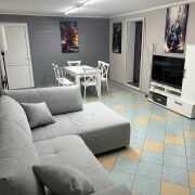 Комфортное размещение 6 человек. Три пары. Также семья с детьми 6 человек. Могут комфортно отдохнуть всей семьей. Можно пригласить друзей до 12 человек. Количество согласовываются и оплачиваются отдельно. Имеются дополнительные спальные места для 6 человек оплачиваются отдельно. Гостиная оборудована телевизором с караоке. Звуковая колонка придаст комфорт для прослушивания музыки и фильмов. Телевизор оборудован смарт-тв с Алисой. Прекрасный звук и два микрофона с блютуз, позволит насладиться пением с караоке. Домик с домашней и романтической обстановкой оборудован всем необходимым. Постельное белье, полотенца, туалетные принадлежности, посуда, микроволновка, духовка, варочная индукционная панель. Все современно красиво и уютно. В домике тепло, газовое отопление. Теплый керамический пол. Уютный диван с ковриком и столиком возле телевизора с караоке доставит дополнительный комфорт.. Сауна оборудована вениками, эфирными маслами. Есть бассейн с холодной водой. Если нужно пригласить компанию для проведения вечеринки есть теплая уютная беседка с панорамными окнами 50 м2 с печкой на дровах, стол, диван и кресла. Оплачивается дополнительно по договоренности. Уютная мангальная зона. Можно из окна наблюдать как жарится ваш шашлык иногда выходя на улицу перевернуть решетку или шампуры. Все очень уютно, душевно и комфортно. Любителей романического отдыха приглашаем к нам в гости посмотреть картины.